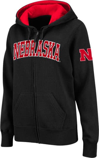 Women's Stadium Athletic Black Nebraska Huskers Arched Name Full-Zip Hoodie