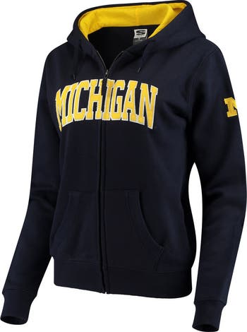 Women's Stadium Athletic Navy Michigan Wolverines Arched Name Full-Zip Hoodie