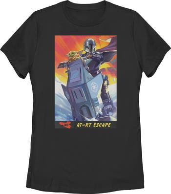 Women's Star Wars The Mandalorian and Grogu AT RT Escape Comic Art Graphic T-Shirt