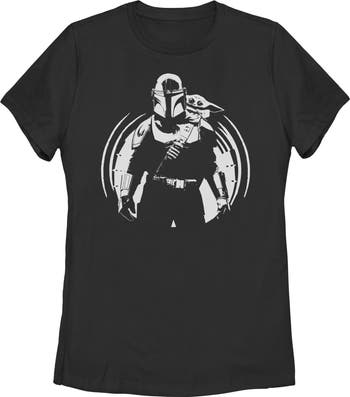 - Experience the thrill of the galaxy with this new women's t-shirt that is perfect for fans who know that "this is the way" to stay stylish! Featuring black-and-white artwork with Grogu nestled on The Mandalorian's back printed across the front.
