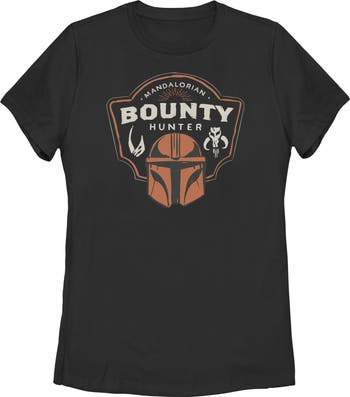 - Protect the galaxy with this women's t-shirt that will look perfect alongside the New Republic! Featuring The Mandalorian's helmet and the phrase "Mandalorian Bounty Hunter" printed across the front.