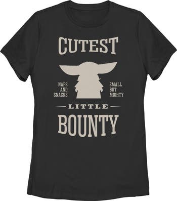 - Protect the galaxy with this women's t-shirt that will look perfect alongside the New Republic! Featuring Grogu's silhouette and the text "Cutest Little Bounty" printed across the front.