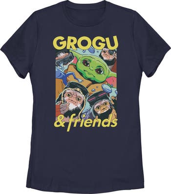 - Protect the galaxy with this women's t-shirt that will look perfect alongside the New Republic! Featuring a fun graphic of Grogu with a group of Anzellan Droidsmith and frogs jumping around them.