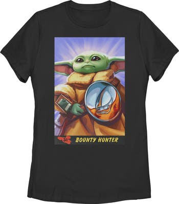 Women's Star Wars The Mandalorian and Grogu The Child Bounty Hunter Comic Art Graphic T-Shirt