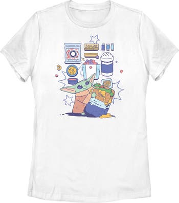 - Experience the thrill of the galaxy with this new women's t-shirt that is perfect for fans who know that "this is the way" to stay stylish! Featuring Grogu clutching a galactic sandwich, surrounded by floating treats like popcorn, cookies, and candies.
