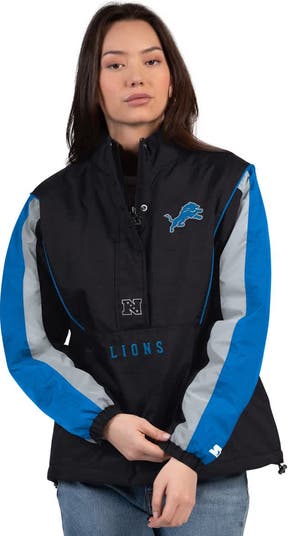 Throw on this Thursday Night Gridiron Half-Zip Jacket from Starter and watch your Detroit Lions exit the tunnel for kickoff. This midweight jacket, designed with a zipper garage, snaps and a stand-up collar, is perfect for showing off your team pride in various weather conditions. The toggle adjustments at the hem allow for a customized fit, while the embroidered fabric applique graphics and team name boldly display your Detroit Lions loyalty.