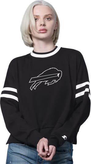 Rep your team in style with this Buffalo Bills Rally Drop Shoulder Cropped Sweatshirt from Starter. The fleece lining provides added warmth and a soft feel, making it perfect for cooler game days or cozy nights in. The embroidered fabric applique team logo boldly displays your Buffalo Bills pride.