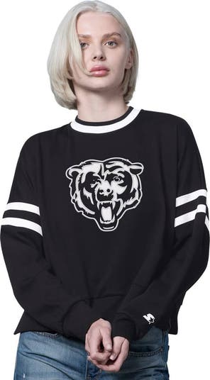 Rep your team in style with this Chicago Bears Rally Drop Shoulder Cropped Sweatshirt from Starter. The fleece lining provides added warmth and a soft feel, making it perfect for cooler game days or cozy nights in. The embroidered fabric applique team logo boldly displays your Chicago Bears pride.