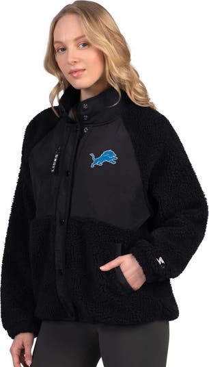 Bundle up in true Detroit Lions fashion with this On the Ball Sherpa Jacket from Starter. The sherpa fabric provides a luxurious feel, while the rounded droptail hem and raglan sleeves offer both coverage and easy mobility. Show off your Detroit Lions pride with the team logo embroidered fabric applique at the left chest and enjoy the convenience of multiple pockets for all your essentials.