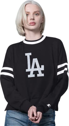 Rep your team in style with this Los Angeles Dodgers Rally Cropped Drop Shoulder Crewneck Sweatshirt from Starter. The cropped hem adds a stylish and modern aesthetic, perfect for showing off your Los Angeles Dodgers pride in a trendy way. The oversized fit and dropped shoulder seams provide effortless mobility, allowing you to cheer comfortably from the couch or the stands.