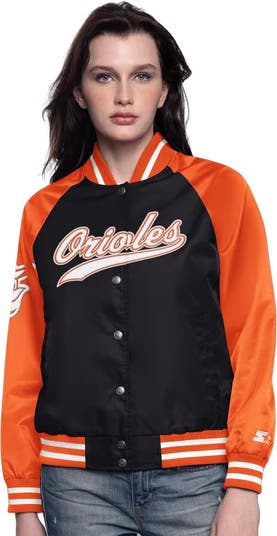 Cheer on the Baltimore Orioles with this Starter Home Run Full-Snap Varsity Jacket. This stylish varsity jacket features a classic striped design on the collar, cuffs and waistband, adding a touch of sporty flair. The lightweight nylon fabric makes it perfect for mild temperatures, ensuring you stay comfortable while repping the Baltimore Orioles.