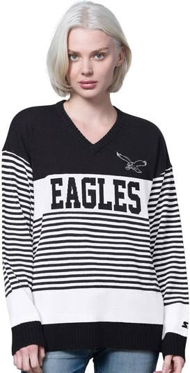 Stay warm and stylish on chilly days while supporting the Philadelphia Eagles with this No Huddle Striped V-Neck Sweater from Starter. The dropped shoulder seams provide a loose, roomy feel. With a woven intarsia knit team wordmark, this sweater boldly displays your Philadelphia Eagles pride for all to see.
