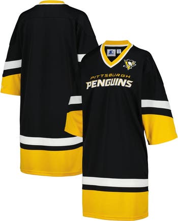 Make a line change to your outfit on Pittsburgh Penguins game day with this Hurry-Up Offense sneaker dress. Designed by Starter to mimic hockey jerseys, it features a stylish V-neckline and stripes that accentuate the Pittsburgh Penguins graphics embroidered across the front. The boxy silhouette, dropped shoulders and half-sleeves provide a more comfortable and relaxed fit.