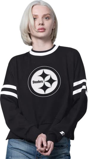 Rep your team in style with this Pittsburgh Steelers Rally Drop Shoulder Cropped Sweatshirt from Starter. The fleece lining provides added warmth and a soft feel, making it perfect for cooler game days or cozy nights in. The embroidered fabric applique team logo boldly displays your Pittsburgh Steelers pride.