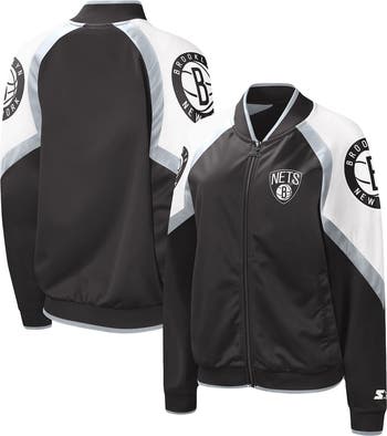 As your Brooklyn Nets hit the hardwood, match their energy by grabbing this Fan Girl jacket from Starter. The perfect layering option for chilly game days, this full-zip comes equipped with roomy raglan sleeves, a lightweight design and breathable mesh inserts. Best of all, the powerful Brooklyn Nets graphics on the sleeves and chest ensure everyone knows you're a passionate fan through and through.