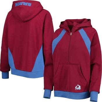 The Women's Starter Burgundy Colorado Avalanche Wishbone Half-Zip Hoodie is the perfect way to show your support for the Colorado Avalanche. This midweight hoodie is made from a soft cotton and polyester blend, featuring embroidered graphics, a fleece lining, and a front pouch pocket. Mesh insets and raglan sleeves provide breathability and comfort, while rib-knit insets and thumbhole cuffs ensure a snug fit. Whether you're cheering on the Avalanche at the game or relaxing at home, this hoodie will keep you warm and comfortable.