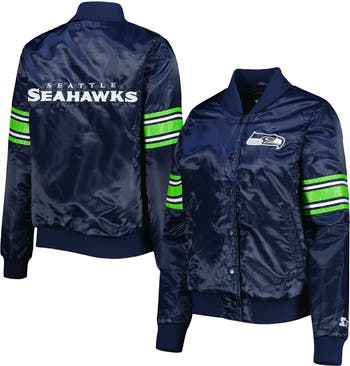 Make sure no one forgets how passionate you are about the Seattle Seahawks by sporting this Starter Line Up jacket. It features a classic Varsity design with its satin finish and signature Seattle Seahawks graphics. The full-snap front allows you to wear it open or closed for a versatile display of team spirit.