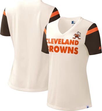 Women's Starter Cream Cleveland Browns Kick Start V-Neck T-Shirt