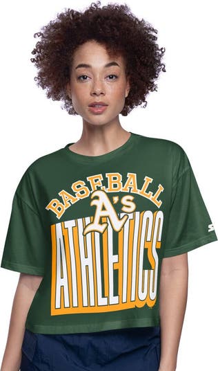 Celebrate your Athletics fandom with this stylish and sporty Play the Ball Boxy Cropped T-Shirt from Starter. The super-soft cotton blend offers a comfortable fit, while the cropped, boxy silhouette adds a trendy touch to your game day look. Bold Athletics graphics screen printed across the front let everyone know who you're rooting for.