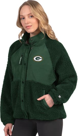 Bundle up in true Green Bay Packers fashion with this On the Ball Sherpa Jacket from Starter. The sherpa fabric provides a luxurious feel, while the rounded droptail hem and raglan sleeves offer both coverage and easy mobility. Show off your Green Bay Packers pride with the team logo embroidered fabric applique at the left chest and enjoy the convenience of multiple pockets for all your essentials.