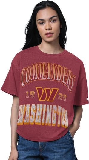 Celebrate the legacy of your favorite team with this Washington Commanders Oversized Hall of Fame T-Shirt from Starter. The dropped shoulders provide greater freedom of movement, while the high hip-length cut adds a modern touch. The distressed screen print graphics and washed fabric give this Washington Commanders tee a vintage-inspired look.