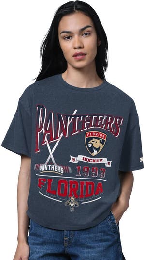 Step into Florida Panthers history with this Starter Oversized Hall of Fame T-Shirt. Crafted for a relaxed fit, this tee showcases vibrant team graphics, letting you represent your favorite franchise in style. The vintage-inspired design pays tribute to the team's legendary past, making it the perfect way to honor iconic players and moments. Its soft fabric ensures all-day comfort, whether you're making your way to the arena or watching the faceoff from home.