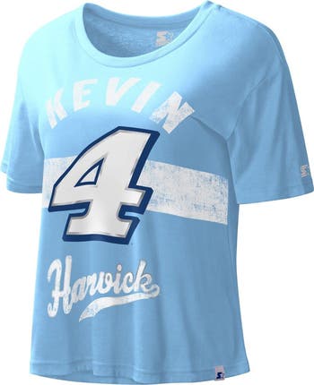 Celebrate your unwavering support for Kevin Harvick with the Women's Starter Light Blue Kevin Harvick Record Setter T-Shirt. This cropped hem tee proudly displays the iconic Kevin Harvick logo, a testament to your dedication to the NASCAR legend. Crafted from a comfortable cotton and polyester blend, it's perfect for cheering on Kevin Harvick and the NASCAR community.