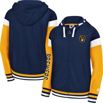 Women's Starter Navy Milwaukee Brewers Homestretch Full-Zip Hoodie