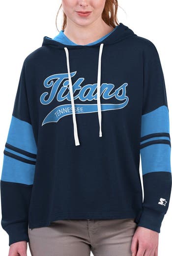 Women's Starter Navy Tennessee Titans Bump And Run Long Sleeve Hoodie T-Shirt