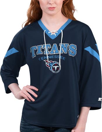 Women's Starter Navy Tennessee Titans Rally Lace-Up 3/4 Sleeve T-Shirt