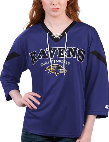Women's Starter Purple Baltimore Ravens Rally Lace-Up 3/4 Sleeve T-Shirt