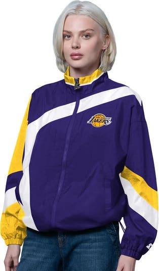 Throw it back to some magical moments in Los Angeles Lakers history by rocking this 1st Quarter Full-Zip Jacket from Starter. A stylish and spirited tribute to your favorite team, it's designed with an oversized fit for a relaxed feel and drop shoulders for greater freedom of movement. The elastic cuffs and drawcord hem provide a snug yet stretchy fit, while the large metallic zipper pull adds both style and function. This jacket features a retro team color stripe design, an applique of the team logo at the left chest, and an embroidered wordmark on the back, making sure you look the part come tip-off.