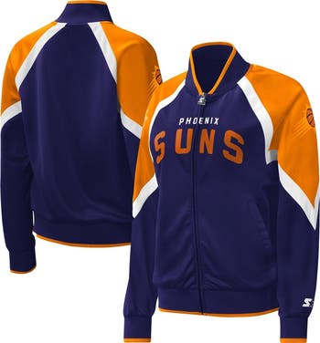 Celebrate your Phoenix Suns fandom in style with this Starter Slam Dunk Raglan Full-Zip Track Jacket. This midweight jacket features screen print Phoenix Suns graphics and a stand-up collar to keep you warm and stylish on game day. Whether you're at Footprint Center or watching from home, this jacket will keep you warm and stylish while you cheer on the Phoenix Suns.