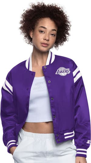 Women's Starter Purple/White Los Angeles Lakers Full Count Satin Full-Snap Varsity Jacket