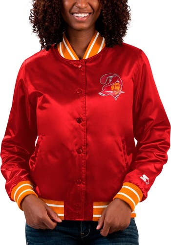 Women's Starter Red Tampa Bay Buccaneers Full Count Satin Full-Snap Varsity Jacket