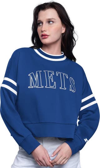Women's Starter Royal New York Mets Power Play Cropped Pullover Sweatshirt