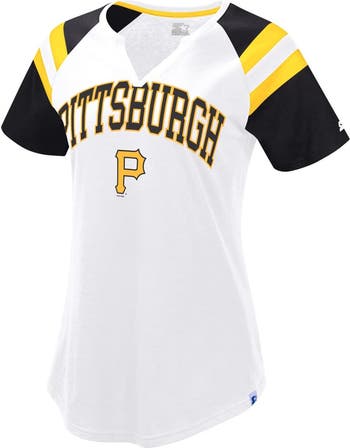 Root for the Pittsburgh Pirates in retro style with this Starter Game On Notch Neck Raglan T-Shirt. This stylish tee features a trendy notch neck and raglan sleeves for a sporty look. Plus, its soft and breathable cotton-polyester blend ensures all-day comfort for cheering on your Pittsburgh Pirates.
