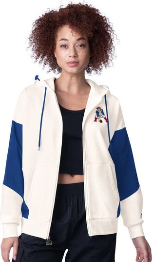 Layer up with a bold statement about your love for the New England Patriots by grabbing this Oversized Scrimmage Full-Zip Hoodie from Starter. It features a trendy dropped shoulder to provide a relaxed fit while the oversized design helps give this midweight option a casual yet spirited look. The New England Patriots applique embroidered on the left chest and team name printed on the back make this full-zip hoodie a strong choice when you want added coverage for those cooler days ahead.