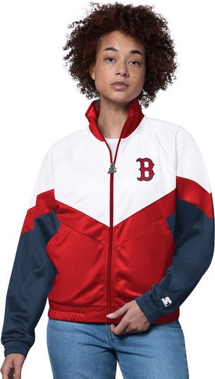Show your Boston Red Sox spirit with this Teamwork Raglan Full-Zip Track Jacket from Starter. This lightweight jacket is perfect for mild temperatures, ensuring you stay comfortable while showing off your team pride. The embroidered fabric applique team logo at the left chest and wordmark on the back will showcase your dedication to the Boston Red Sox.