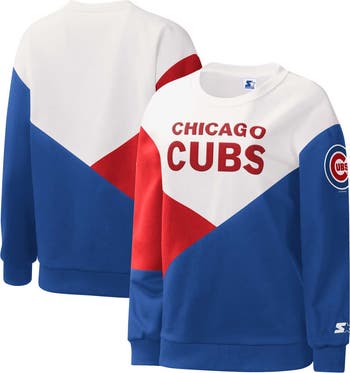 The Starter Women's White/Royal Chicago Cubs Shutout Pullover Sweatshirt is the perfect way to show unwavering support for the Chicago Cubs. Crafted from a soft cotton and polyester blend, this midweight sweatshirt features embroidered graphics and a French terry lining for added warmth. Rib-knit cuffs and waist provide a comfortable and secure fit, while the screen-printed graphic on the sleeve proudly displays Chicago Cubs pride. Whether cheering from the stands or showing support, this sweatshirt represents the Chicago Cubs in style.