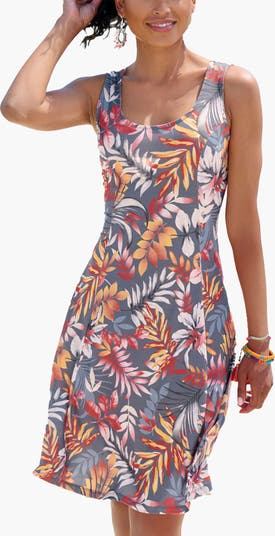 Elevate your summer wardrobe with this stylish mini dress featuring a charming floral print and a trendy strappy back. The low-cut back with crisscross strap details adds a touch of sophistication, while dividing seams enhance the dress’s flattering fit. Designed to run large, we recommend sizing down if you're between sizes for a more tailored silhouette. Measuring approximately 37 inches in length, this dress is made from a comfortable blend of 95% polyester and 5% elastane. Easy to care for, it’s machine washable and maintains its vibrant print, which may vary slightly, adding a unique touch to each piece.