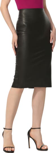 Introducing our must-have stretch faux leather pencil skirt - the perfect addition to your wardrobe! This stylish skirt boasts a sleek and flattering fit that will make you look and feel amazing.