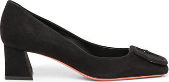 - Decorative suede buckle detail on the toe