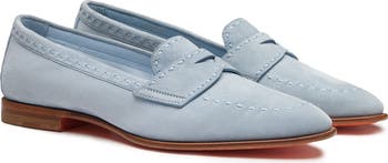 The iconic lines of the penny loafer are rewritten to marry exceptional craftsmanship with modern comfort. Detailed with intricate Sigillo stitching along the edges, this style is crafted from Seta suede, gracefully embracing the foot like silk to deliver an elevated sensory experience with every stride. Styled with a sophisticated tapered toe for a versatile look that takes you seamlessly from desk to drinks.