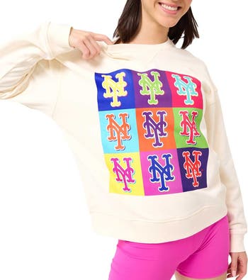 The Women's Terez Cream New York Mets Classic Oversized Pullover Sweatshirt is the perfect way to show your support for the New York Mets. This midweight sweatshirt is made from soft pima cotton and features a comfortable oversized fit with dropped shoulders. The hem hits at the waist, and the screen print graphics proudly display the New York Mets logo. Whether you're cheering on the Mets at the stadium or just relaxing at home, this sweatshirt is sure to keep you comfortable and stylish.