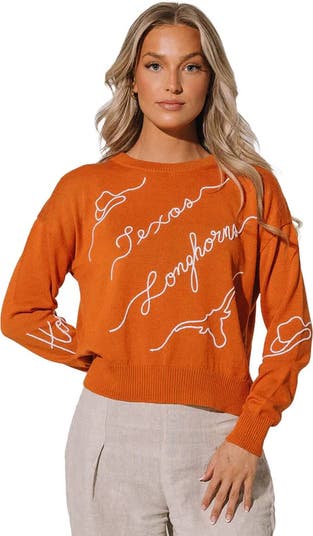 Women's Texas Orange Texas Longhorns Love Note Embroidered Pullover Sweater
