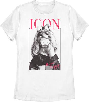 - Strut your stuff with this stylish new women's t-shirt that is perfect for every occasion! Featuring a black-and-white picture of Miss Piggy with the word: "Icon," across the top