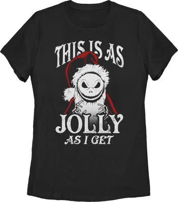- Strut your stuff with this stylish new Christmas Women's T-Shirt that is perfect for the holidays! Featuring Jack Skellington dressed up for Christmas as Santa surrounded by the text "This Is As Jolly as I Get" printed in a distressed style.