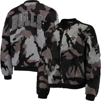 Women's The Wild Collective Black Chicago Bulls Camo Sherpa Full-Zip Bomber Jacket