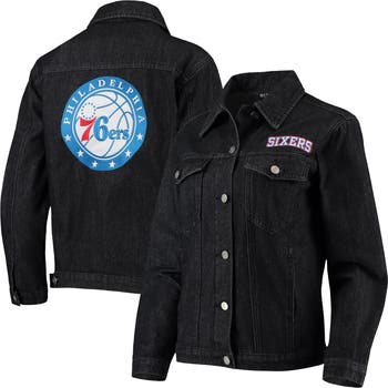 Layer up and cheer on the Philadelphia 76ers with this Denim button-up jacket from The Wild Collective. Designed with embroidered Philadelphia 76ers patches, this midweight jacket is a stylish addition to your collection. The comfy material and convenient front slip pockets make this piece of outerwear a perfect finishing touch on chilly game days.